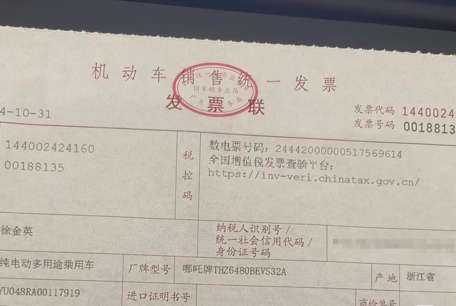 一位哪吒车主展示了自己的购车发票。开票日期是10月,直到现在都提不了车。4S店给出的答复是:由于零部件无法供应,导致车辆无法生产。