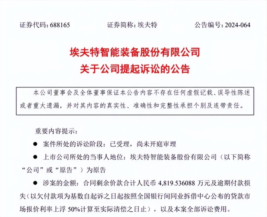 但城门失火殃及池鱼,就在索密克与哪吒合同纠纷法院冻结账户期间,为哪吒提供工业机器人的供应商埃夫特起诉了哪吒,涉及金额4819.5万元。埃夫特方面称,哪吒方面已完成验收,但欠款多次催促未果,已经向法院提起财产保全。这意味着哪吒银行账户有可能再次被冻结。