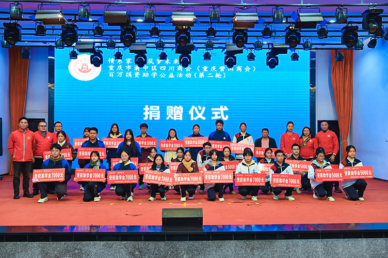 11月26日,重庆营山商会“情系家乡·筑梦未来”百万捐资助学公益活动在营山中学大礼堂举行。