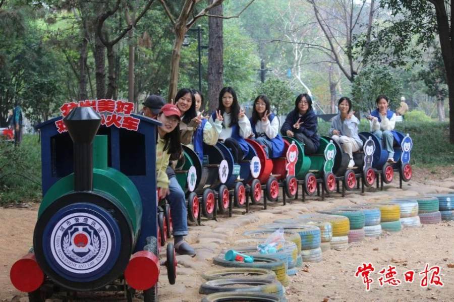 活动当天,30名志愿者分成“圾”不可失队、“圾”刻改变队和“分”外留心队三个小分队,分别前往屈原公园、丁玲公园和常德河街的垃圾分类主题宣教基地。在主题公园内,志愿者分别来到知识科普区、拍照打卡景观装饰区和趣味区等多个特色区域,围绕垃圾分类主题,开展宣教活动。在垃圾分类趣味互动打卡环节,志愿者们与路人一起开展“翻翻乐”互动游戏,加深对垃圾图标及标识卡片的认识。在垃圾分类元素的景观设施前,志愿者“打卡”用废旧轮胎制作的花坛、用旧油桶和废木板组装的欢乐小火车……这些用废旧垃圾组装的创意设施,让参与者感受到了别样的乐趣,也让他们体会到了废旧资源循环利用的深刻意义。