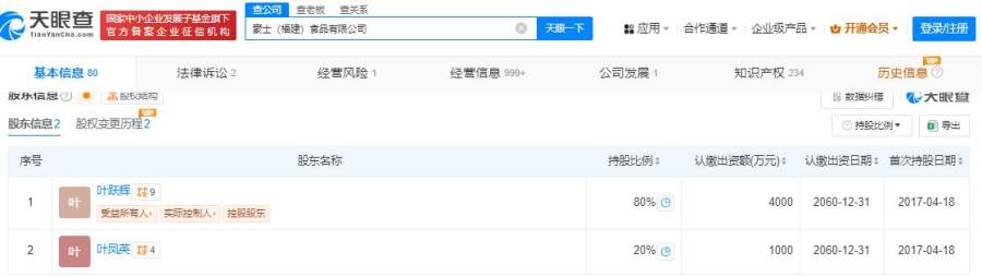 官网显示,豪士起源于创始人叶跃辉1995年所开的家庭烘焙坊,2010年,启用了“豪士”这个品牌,2017年,成立了豪士食品。天眼查显示,豪士食品的法定代表人及实际控制人为创始人叶跃辉,持股比例为80%。豪士食品的另一股东为叶凤英,持股比例为20%。据叶跃辉儿子在直播间透露,叶跃辉与叶凤英是夫妻关系。