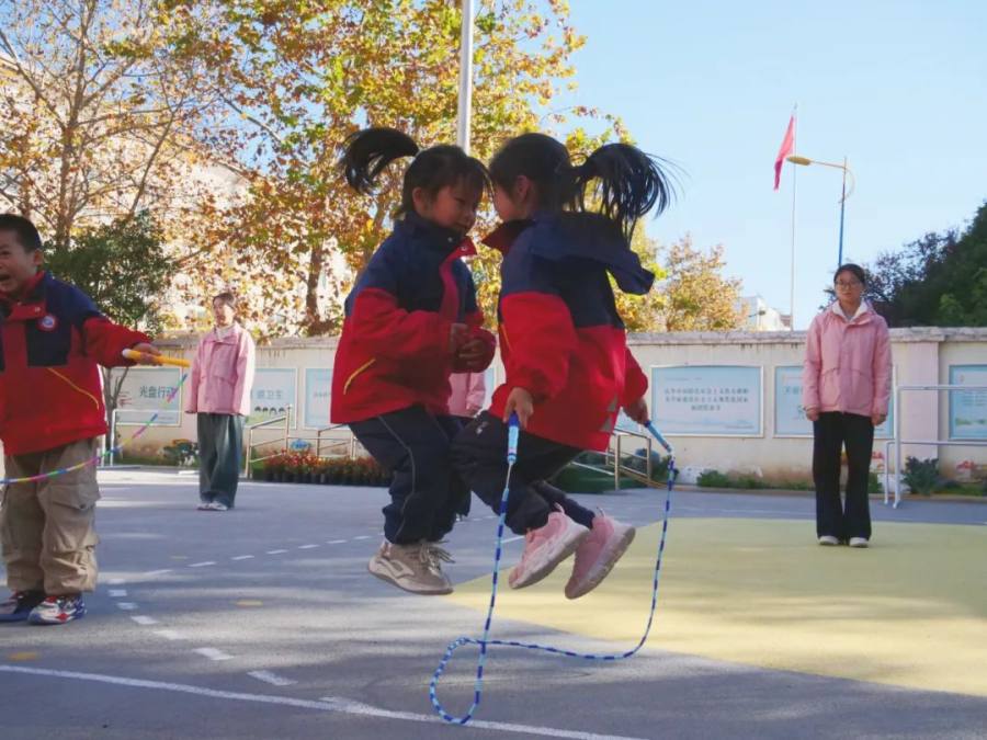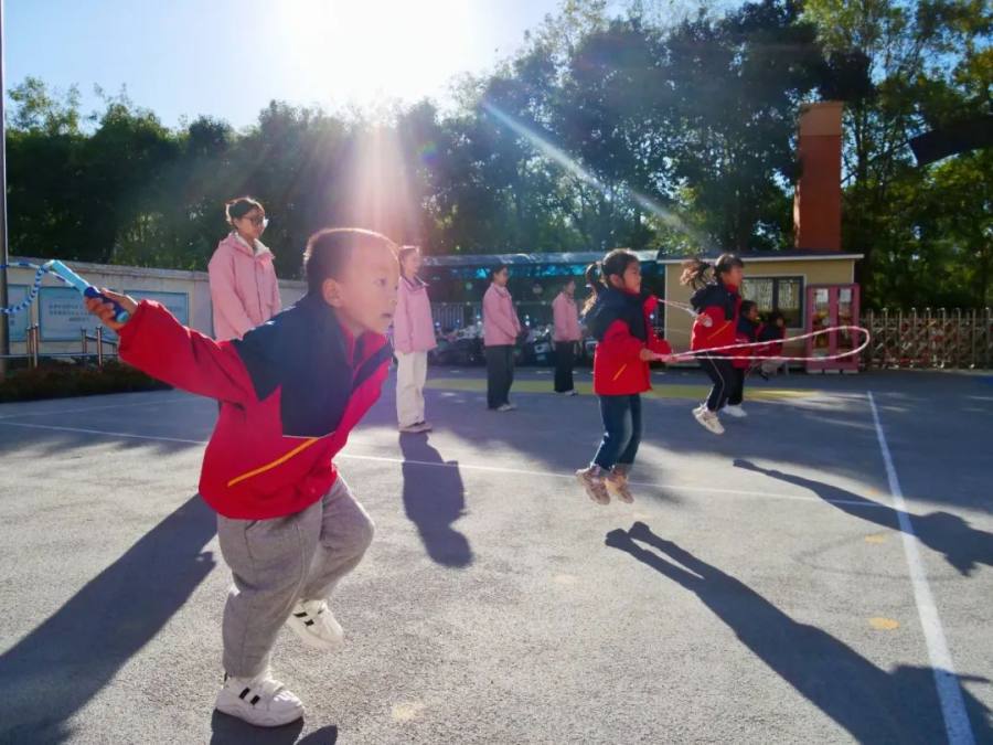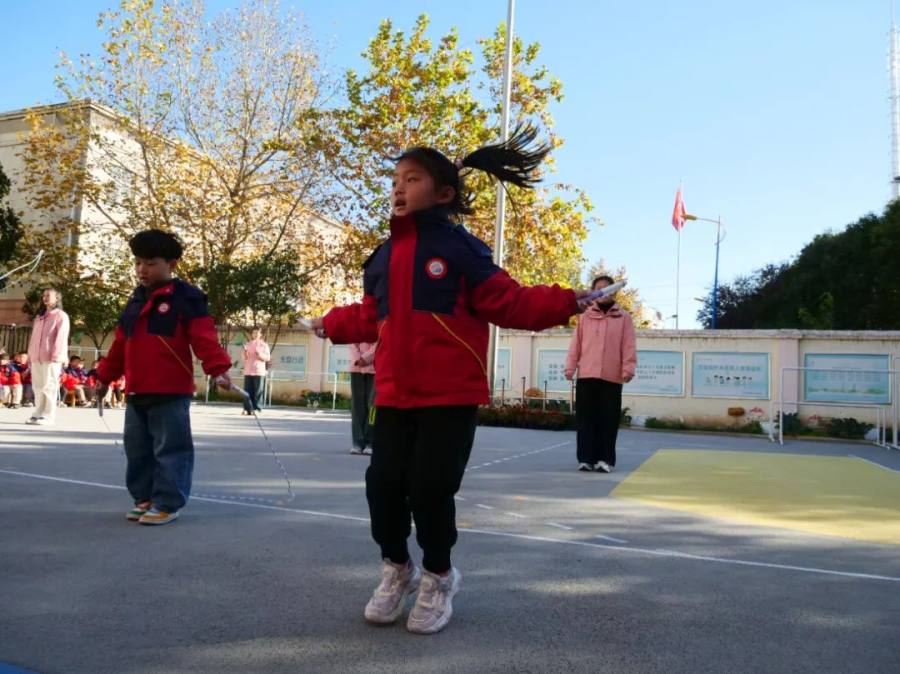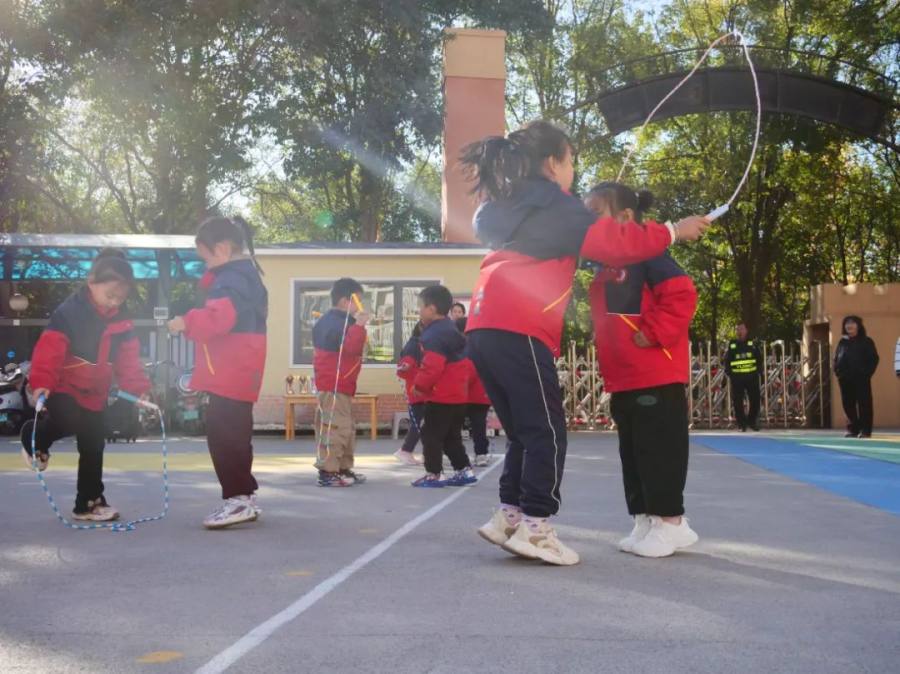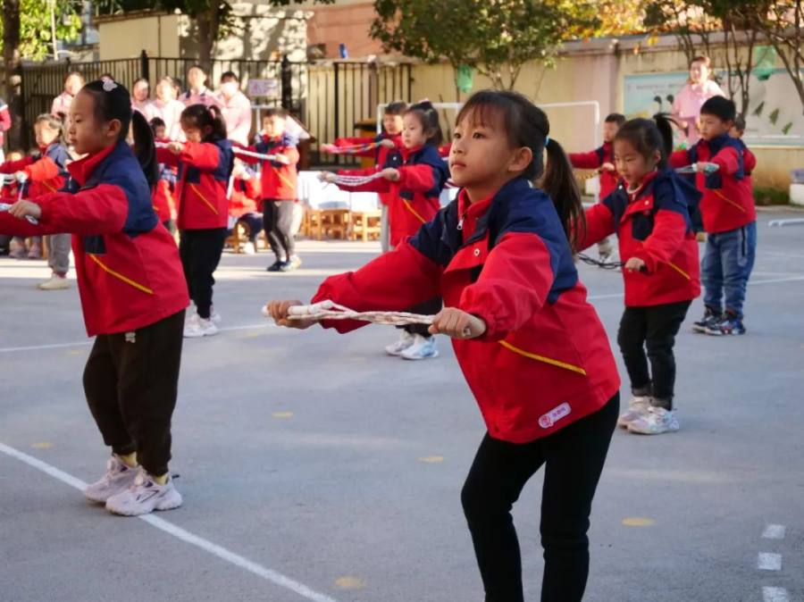 有趣的绳操展示,孩子们在欢乐的音乐中,不知不觉提高了身体的平衡能力。手脚协调性,还锻炼了孩子们的跳跃能力,操场上彩绳飞舞,小朋友们飞快地甩动着绳子,脚步随着绳子有节奏的跳跃,轻松又迅速。