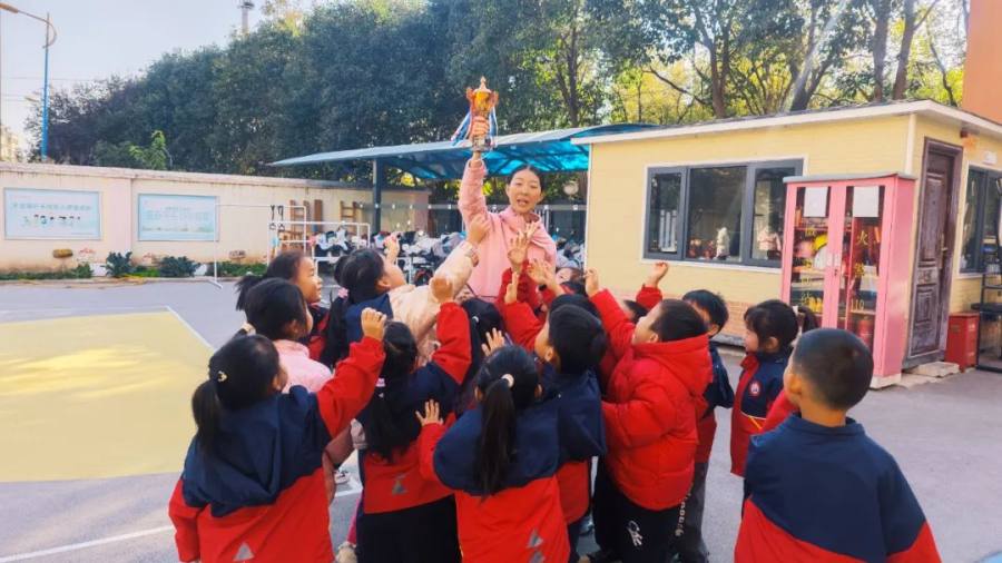 在此起彼伏的加油呐喊声中,跳绳比赛落下了帷幕。孩子们通过不懈的努力,突破自我,取得了优异的成绩。每班一等奖累计积分3分,二等奖累计积分2分,三等级累计积分1分。最后由裁判汇总积分,评出了一二三名,菲菲老师为获奖班级颁奖。