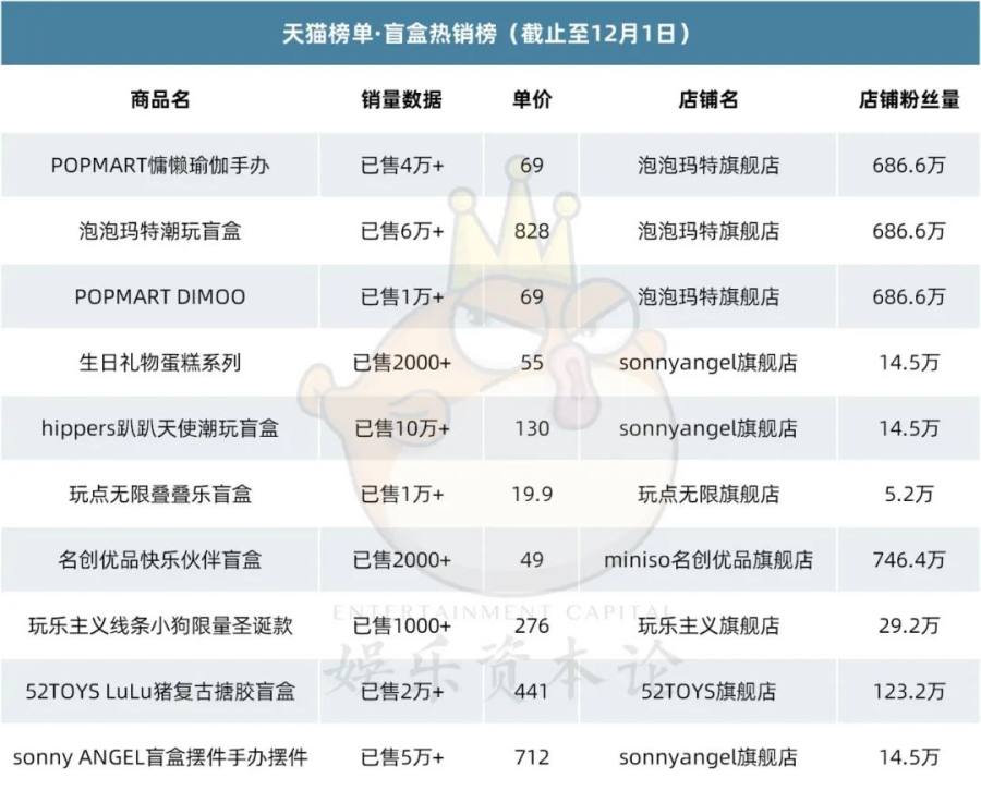 11月IP衍生品榜单:泡泡玛特系列、Sonny Angel趴趴天使持续领跑