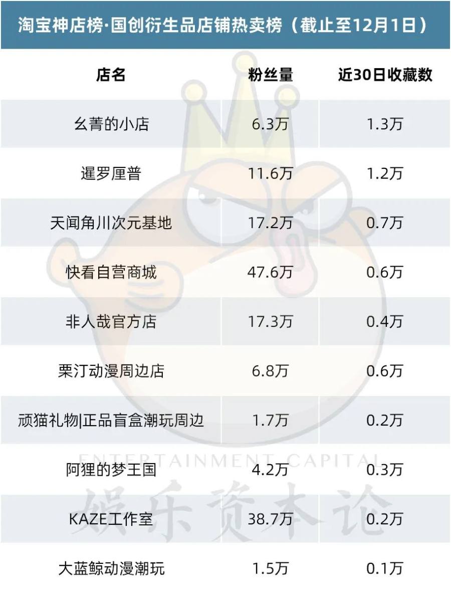 在上榜店铺中,古力古力GuliGuli、萌乐漫旅、露娜的奇妙之旅等店铺衍生售卖痛包、家居服等产品,进一步收割了大批粉丝。