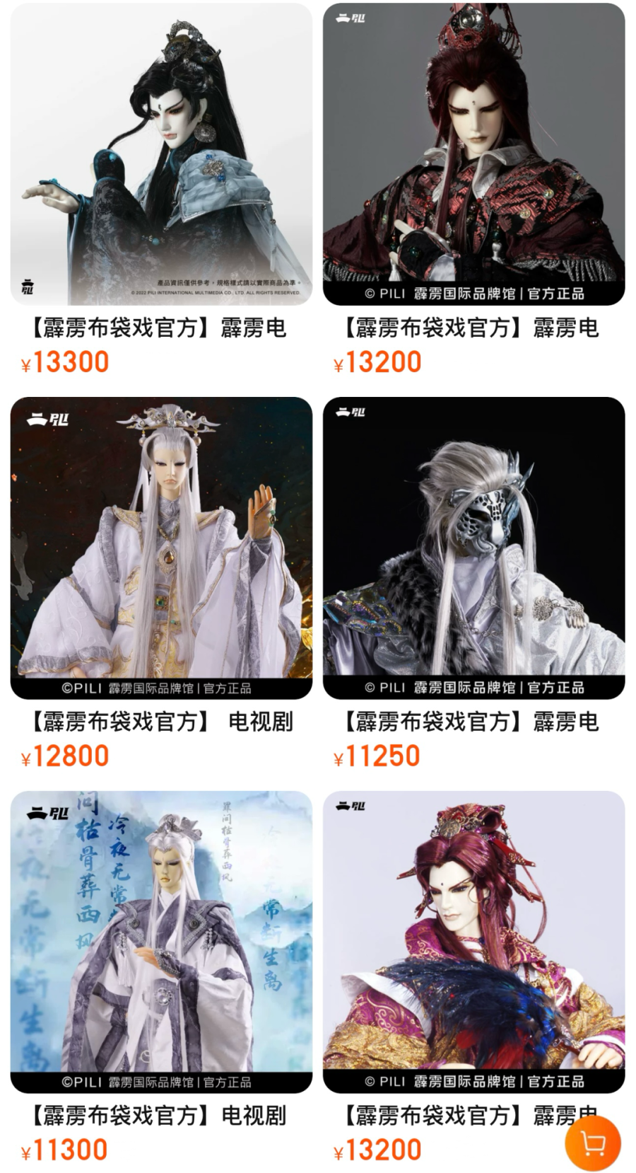 新上榜的hasuhasugoods、战双帕弥什官方店、霹雳国际品牌馆运营的均为衍生IP。其中,hasuhasugoods和战双帕弥什官方店的产品分别源自游戏IP MuseDash和战双帕弥什,而霹雳国际品牌馆则依托台湾动漫IP霹雳布袋戏,目前店铺主要销量来自亚克力摆件及其他轻周边,其木偶手办价格相对较高,销量较少。