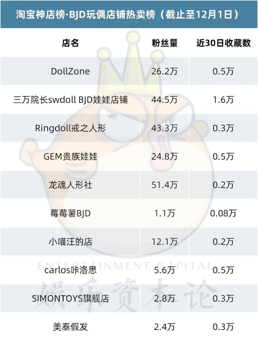 美泰假发作为一家专营BJD假发的店铺,30天内购买人数增速超5%,成为榜单中的一匹黑马。