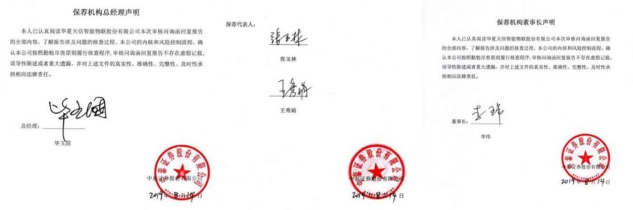 记者注意到,钟建春与张玉林曾同时参与华夏天信智能物联股份有限公司(下称“华夏天信”)拟在科创板上市的项目,张玉林担任该项目保荐代表人,钟建春为该项目组成员。在IPO项目相关文件的签署栏,亦有毕玉国以及已“落马”的中泰证券原董事长李玮的签名。