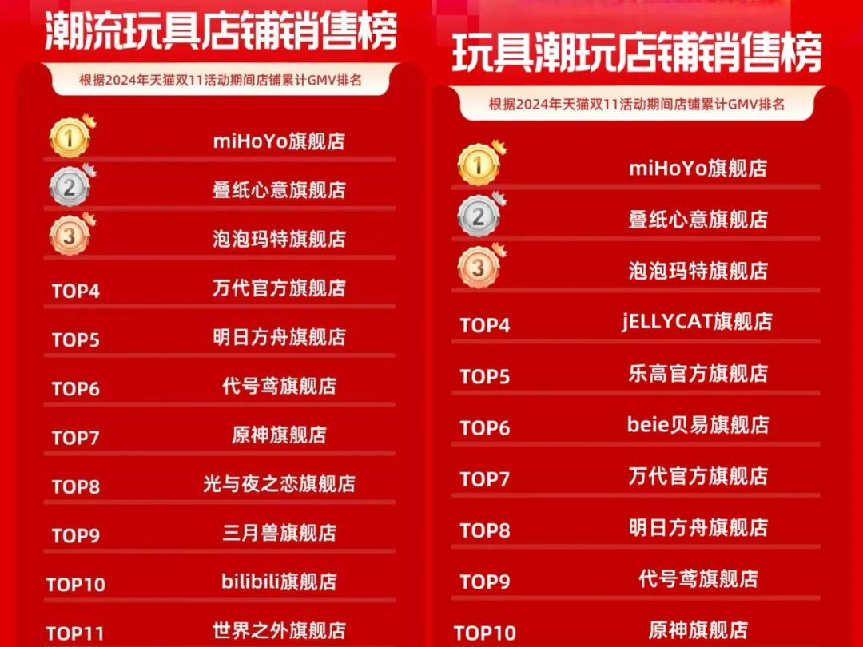 叠纸就很清晰地践行前辈们趟过的前路,旗下工作室的“叠纸心意旗舰店”在天猫双11全周期潮玩销售榜位列第二,用《闪耀暖暖》完成了系列的3D化转型,通过《恋与深空》完成对动作战斗的探索,最终产出像《百面千相》《万物契约》等动作游戏新贵。