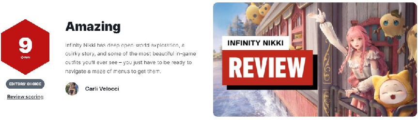 而对于新游,IGN给予本作9分的高分,表示《无限暖暖》拥有极具深度的开放世界探索内容、独特的故事情节,以及最华美的游戏服饰,不过玩家需要准备好穿越一片迷宫般的菜单才能获得它们,海外媒体EuroGamer甚至宣称,《无限暖暖》让开放世界抽卡游戏真正向前迈了一步。