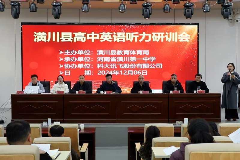 为探寻高中英语听力教学的新途径,提升教师的教学能力,助力学生英语听力水平的提高,12月6日,由县教体局主办,潢川一中承办,科大讯飞股份有限公司协办的2024年潢川县高中英语听力研训活动在潢川一中举行。县教体局党组成员、副局长吴昱,师训股、县教育研究中心相关领导,全县高中学校分管领导、英语学科组组长、英语教师代表及县教育研究中心教研员参加了此次活动。