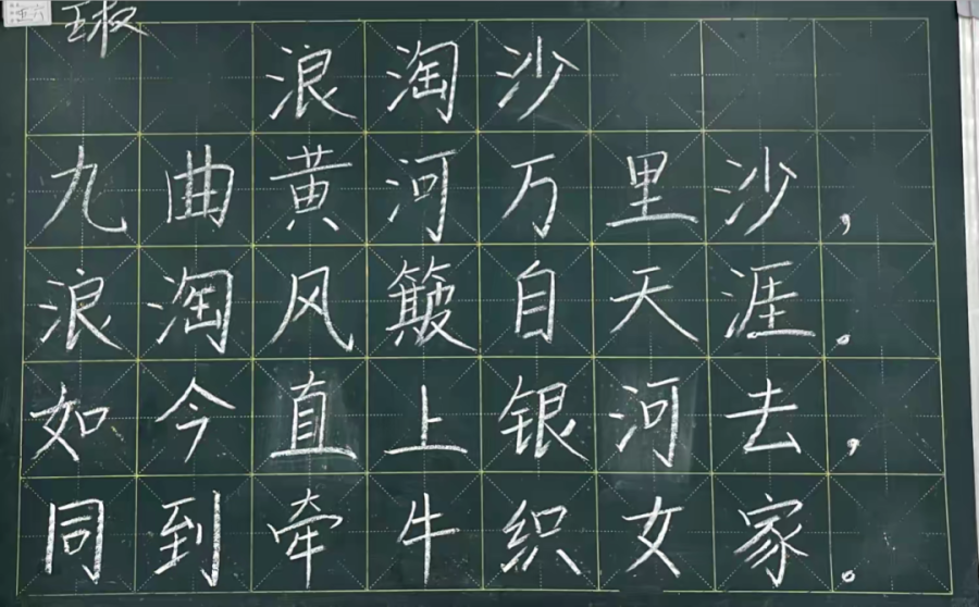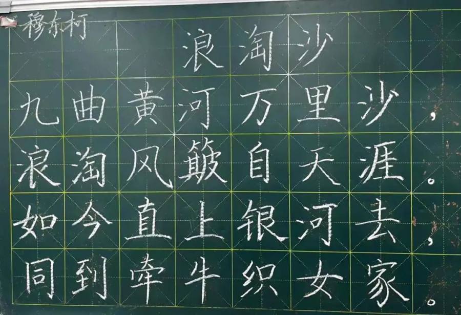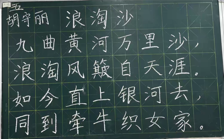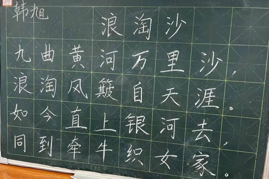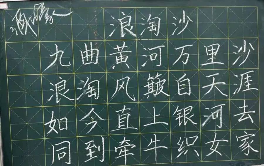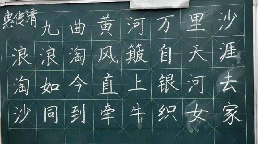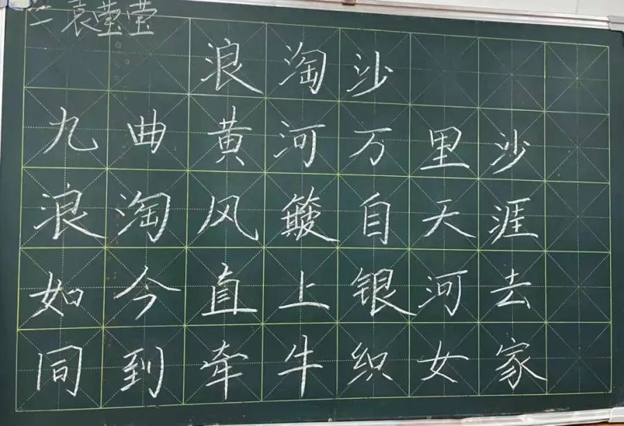 参赛老师们一笔一画、工整有力地书写着每一个字,那一支支细细的粉笔,在老师们的手中如春山溪流。不一会儿,一行行整齐美观的粉笔字就跃然于黑板上。点横撇捺,工整美观,潇洒飘逸,得体大方。字字展现着姜小教师青春昂扬的活力及良好的精神风貌。