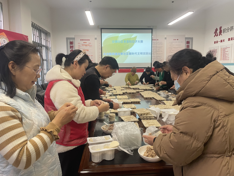 冬至,是二十四节气中的一个重要节气,也是我国民间的一个重要节日。俗语说“冬至不端饺子碗,冻掉耳朵没人管”,在我国一直有冬至吃饺子的习俗,为进一步弘扬中华民族民俗传统文化,增进居民间的情感,在“冬至”来临之际,12月10日上午安泰社区联合思念集团在活动室组织居民开展包饺子大赛。