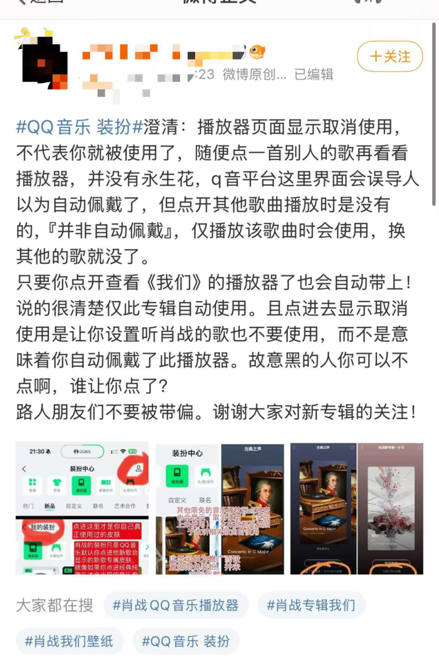 在专辑发布的两天后,有用户在社交媒体上吐槽:“自己从未搜索过肖战,播放器却莫名其妙地自动装扮成了他的专辑皮肤。”很快,QQ音乐出来澄清:这是平台的“彩蛋运营”,播放专辑时会自动装扮,误会纯属技术设置问题。虽然平台诚恳致歉,但争议却并未消散:这个销量,真的是因为路人的广泛购买吗?