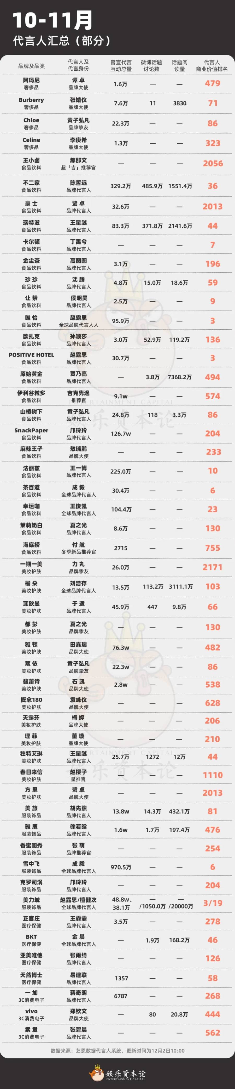 另一端,流量型艺人因其强大的粉丝基础和市场影响力,一直受到品牌的青睐。