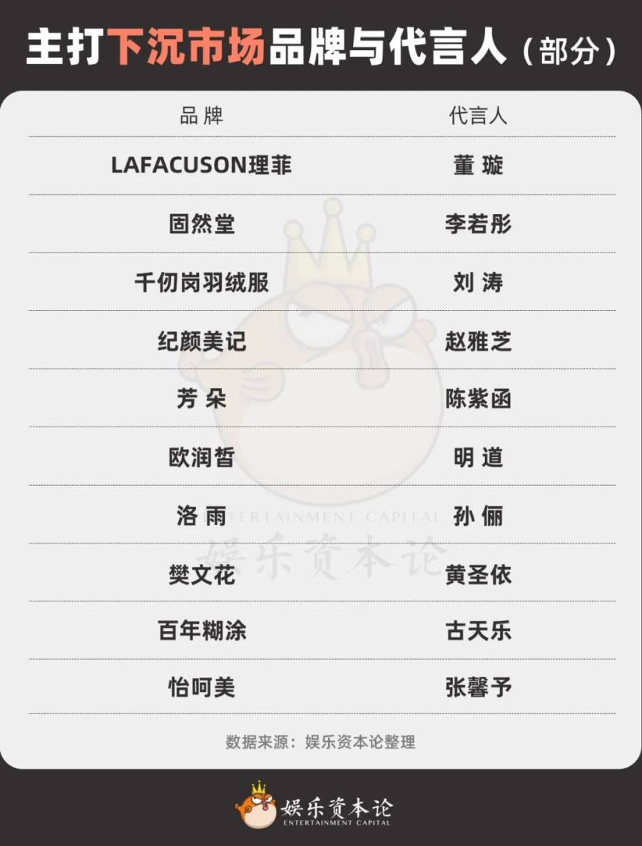 主打下沉市场的品牌,选择与高国民度老艺人进行合作。