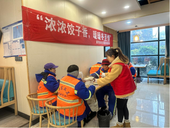 12月20日,龙子湖街道办事处在春华街社区工会驿站邀请辖区环卫工人来工会驿站歇脚取暖、吃冬至饺子,为他们送去冬日里工会组织随时随地的贴心关爱。