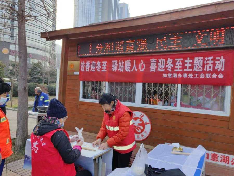 12月20日,如意湖街道办事处工会联合会在天时路社区工会驿站开展“饺子飘香冬至情 凝心聚力工会暖 ”冬至邻里节活动。