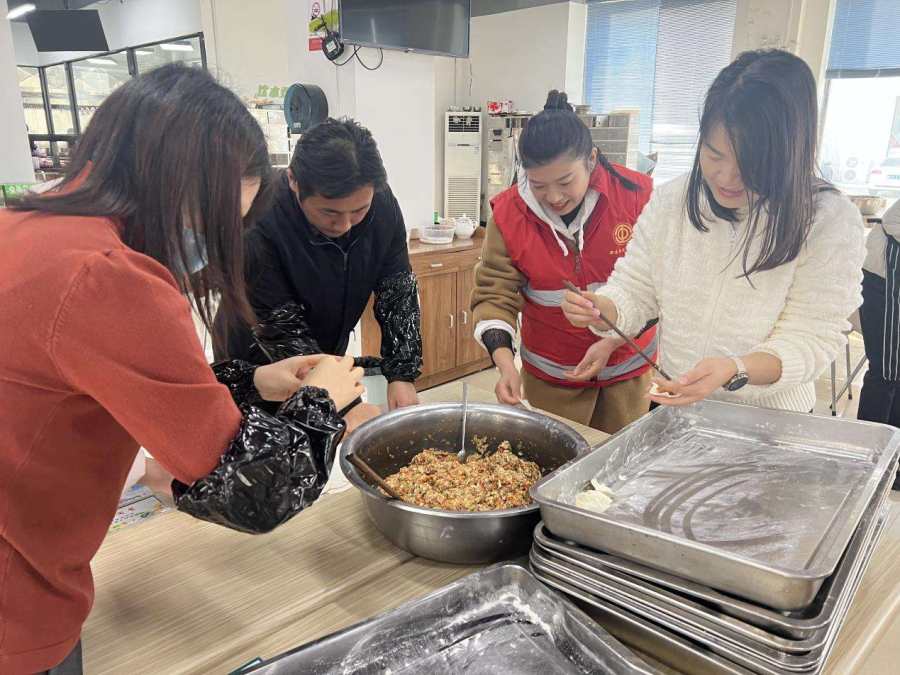 12月20日,如意湖街道办事处工会联合会在绿地社区日间照料中心工会驿站开展“浓浓冬至情,温情暖人心”活动,大家一起包饺子、吃饺子、送饺子,感受冬至的快乐。