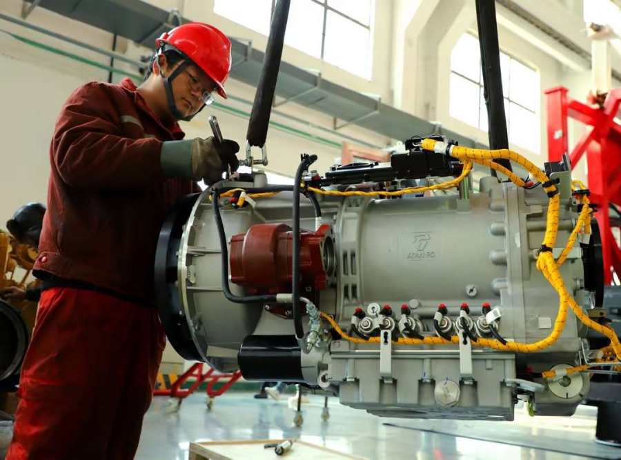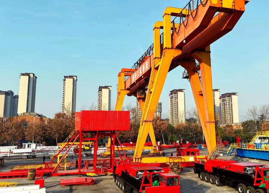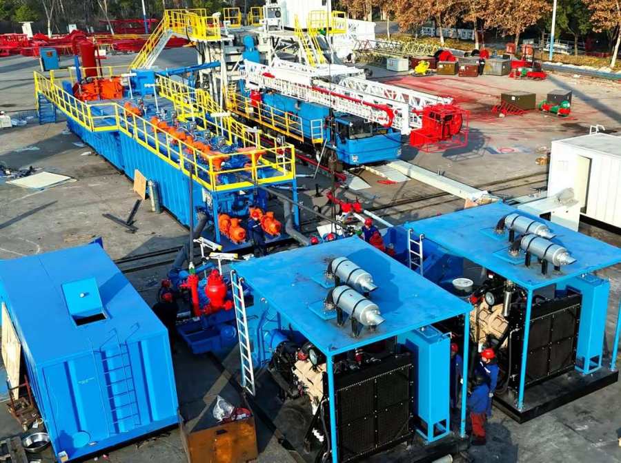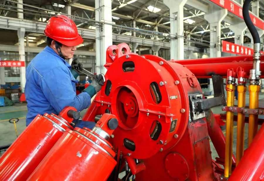 12月18日,在南阳二机石油装备集团股份有限公司生产区,一批由该公司自主研发生产的3000米车装钻机即将运往上海港出口海外。