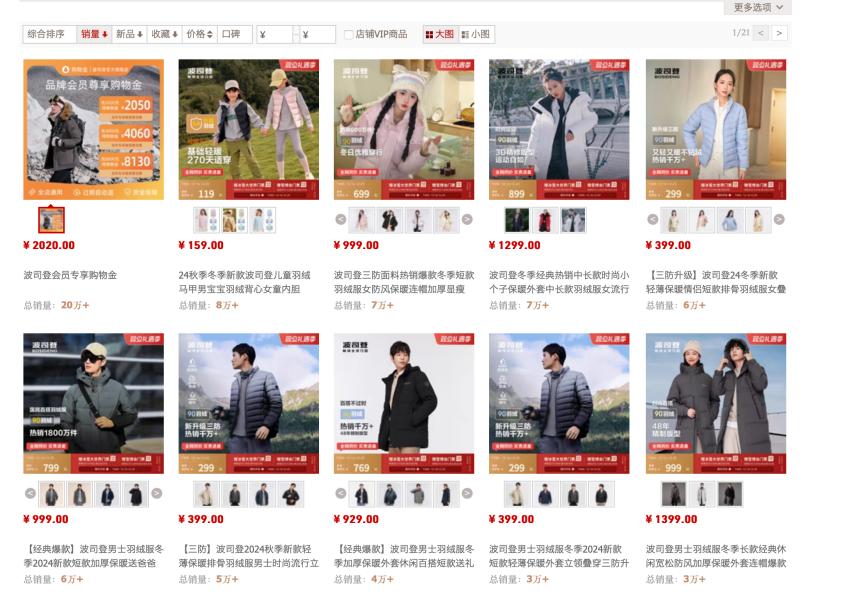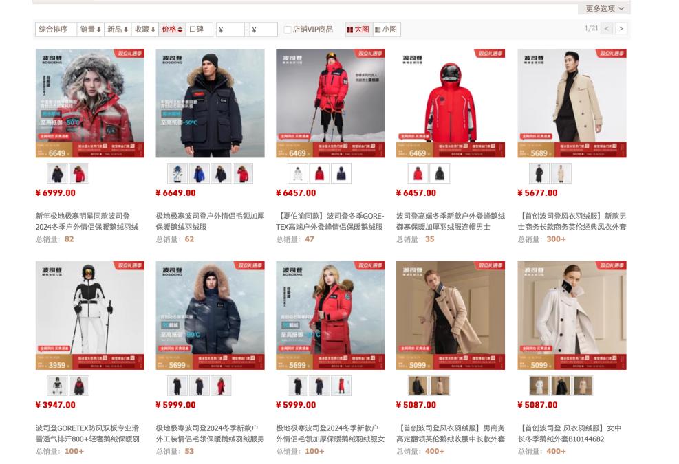从波司登天猫旗舰店的销售数据可以看出,其高端高价产品市场接受度不足的问题,几百元的中低价产品仍是销售主力,动辄数千元甚至上万元的高端产品销量却十分惨淡。
