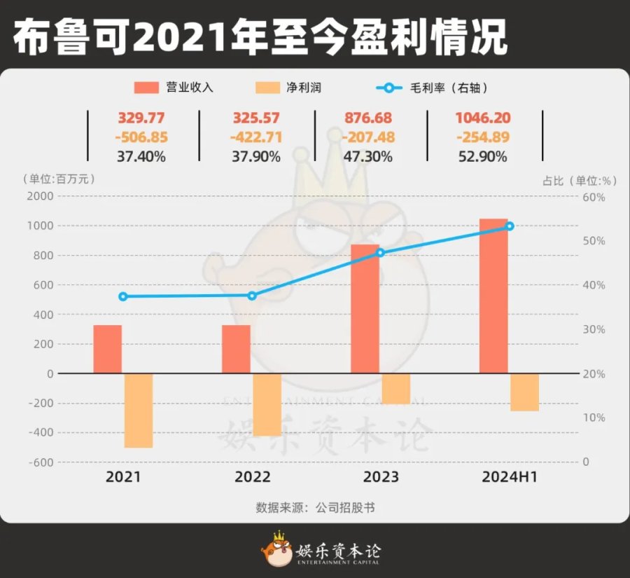 招股书显示,奥特曼在2023、2024年上半年为布鲁可贡献了63.5%、57.4%的营业收入。截至今年一季度,布鲁可在拼搭角色类玩具拥有255个SKU,其中奥特曼IP占到133个SKU。同时,或许是受到奥特曼上游授权费用的影响,奥特曼IP的毛利率低于变形金刚及布鲁可自有IP英雄无限。