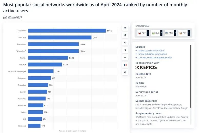 Statista披露的数据显示,截至2024年4月,TikTok全球下载量超49.2亿次,月活破15.82亿,已成为全球第五大受欢迎的社交应用。TikTok在全球市场攻城略地的同时,也不遗余力推广剪映。