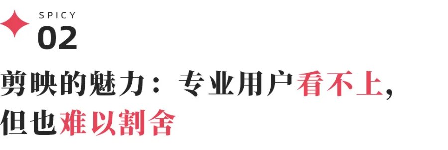 尽管剪映面向企业用户上线了诸多专业化的功能,但在专业用户看来,其依然比不上Premiere Pro。“你面试剪辑岗位,跟老板说,我只会剪映,会被笑话的”,在一家媒体做剪辑工作的张先生对剁椒Spicy表示,“这就像你面试设计,却只会用美图秀秀,会被认为不专业。”
