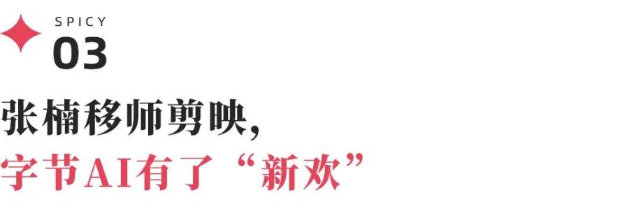 值得注意的是,张楠并不会仅仅按部就班地运营工具化的剪映,而将致力于靠剪映帮字节跳动拿下AI时代的船票。