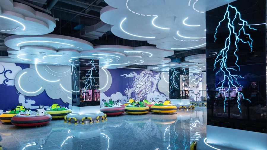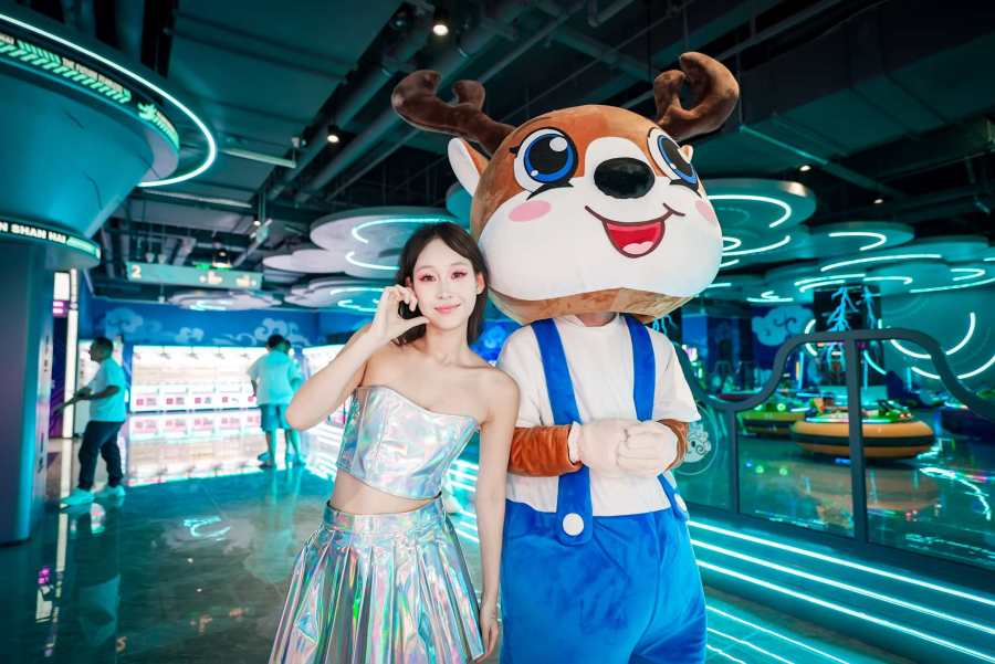 以山海经神话元素刻画的呦呦亲子乐园集探险、益智于一体;艺术感拉满的精神走廊、山海经书吧吸引众多游客前来打卡;酷趣潮玩圣地PS5区、轰趴房、酒吧等主题区也是人头攒动;在数字电竞区还设有雷泽碰碰车、射击馆、双道保龄球馆等最新款电玩设备;水果吧、饮吧还有不限量免费自取的时令水果、各种大牌饮品。