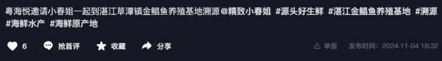今年以来,粤海饲料继续加快发展预制菜业务。邀请抖音网红一起到金鲳鱼养殖基地溯源、带货销售等。