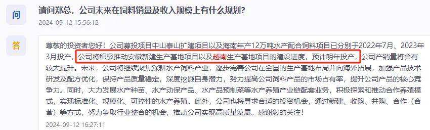 此前,粤海饲料收入主要来源于国内。不过根据公开资料显示,粤海饲料在越南的水产饲料生产基地,预计明年也将投产。