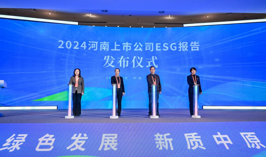 大会现场,在全场倒数计时声中,随着河南财政金融学院党委书记王雪云,河南省委资讯组研究员、河南省财政厅原二级巡视员胡兴旺,河南上市公司协会执行副会长兼秘书长康红仲,大河财立方总编辑王鲁峰共同按下启动按钮,备受期待的《2024河南上市公司ESG报告》(以下简称《报告》)正式发布。