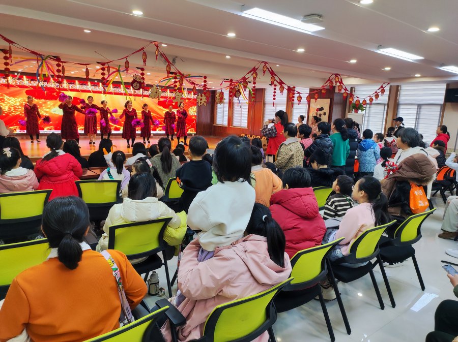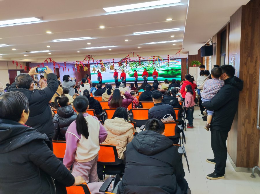 活动开场,小朋友们瞬间成为全场焦点,化身为舞台上的闪耀主角。他们身着俏皮可爱的祥蛇服饰,在欢快活泼的音乐旋律中欢快蹦跳,那一张张充满稚气的笑脸、天真无邪的动作,恰似一群灵动俏皮的小精灵降临人间,为现场带来了无限生机与活力。紧接着,杲村舞蹈队的阿姨们闪亮登场,她们身着色彩鲜艳的舞衣,伴随着明快有力的舞蹈节奏,动作整齐划一、优美流畅,每一个舞步、每一个手势都彰显出新时代村民积极向上的蓬勃活力与自信风采,赢得了台下观众阵阵掌声。随后,托育中心的老师们也带来了活力四射的精彩表演,她们用灵动轻盈的步伐踏出了新年的希望之音,用热情洋溢的舞姿诉说着对新岁的美好憧憬,将现场气氛推向了高潮。