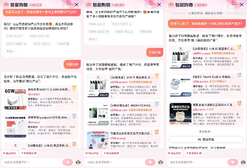 01淘宝AI化最激进,京东抖音AI导购公式化
