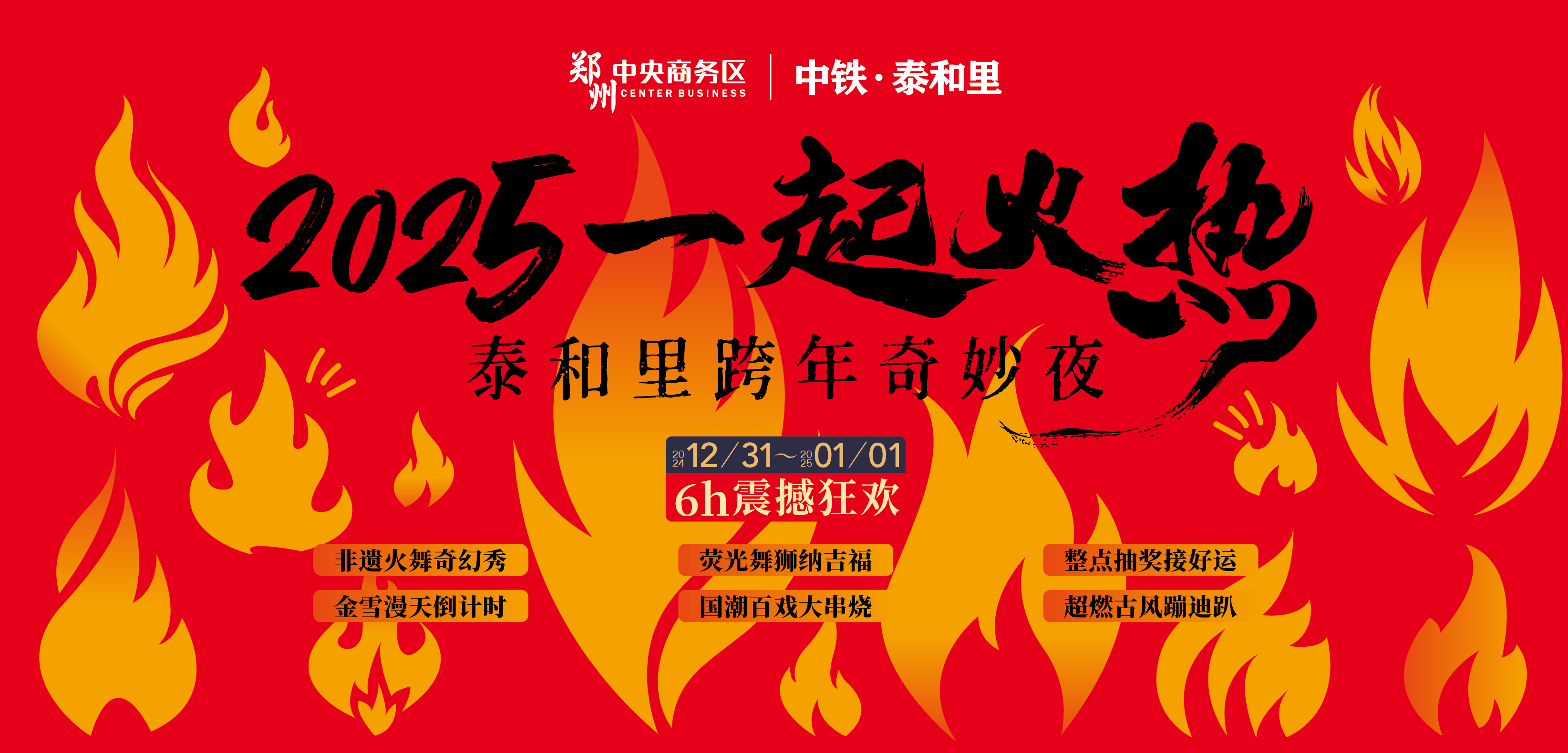 中铁泰和里将以其特色的时代主题,推出跨年系列主题活动,电音玩火派对、荧光舞狮、国风杂耍、花火巡游、古代名人蹦迪、整点抽奖、跨年倒计时等仪式感满满的活动内容将燃爆全场,在泰和里的璀璨灯火下,全场游客整点倒计时祈愿,伴随一声火车汽笛驶向2025。