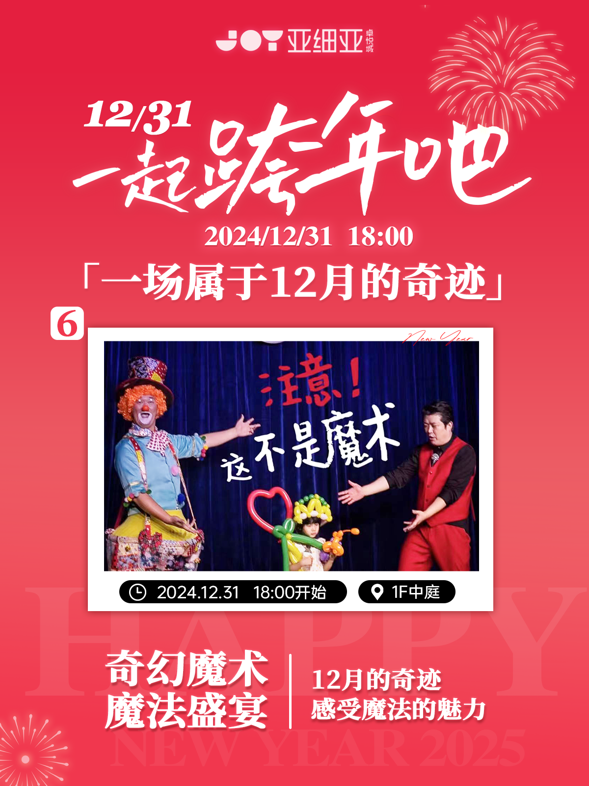 活动二:2025跨年音乐之夜(12月31日)。18:00开始,青年摇滚乐队助阵,喜剧笑咖激情演绎,奇幻魔术惊奇表演,现场互动游戏抽奖品。