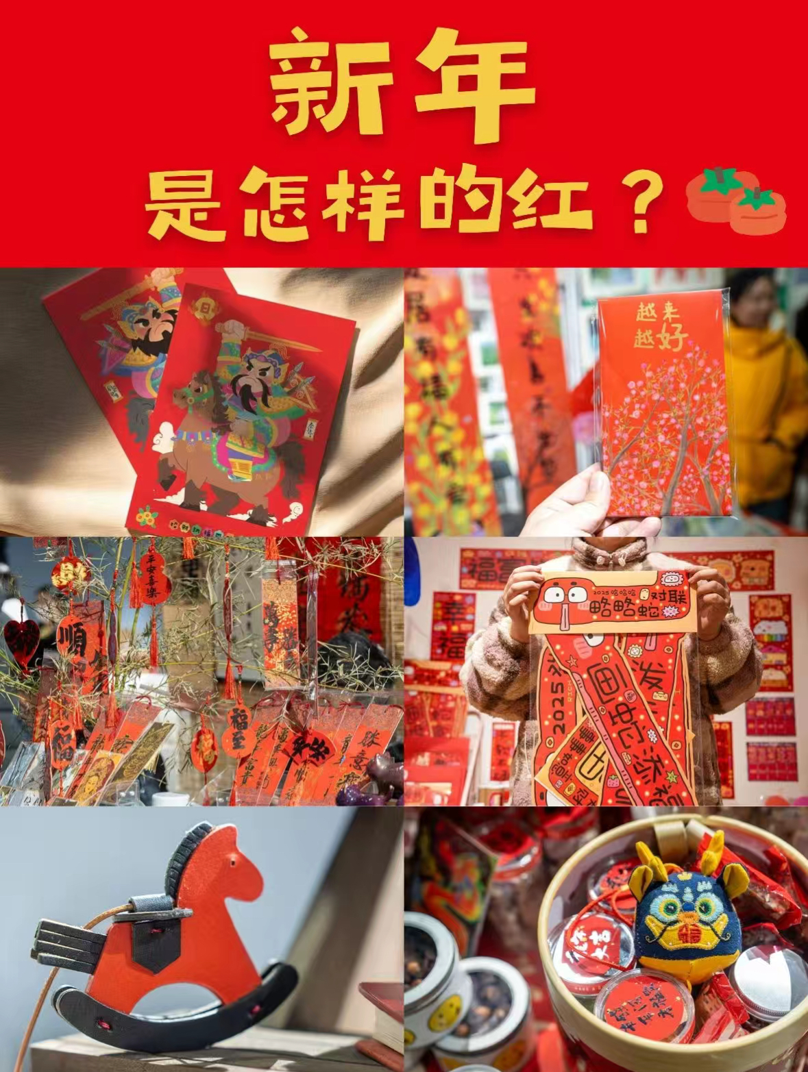新年是怎样的红?是春联上的朱砂红,墨香晕染,笔走龙蛇,勾勒阖家团圆祈愿。是灯笼中的暖橙红,烛光摇曳,如繁星坠凡,晕散暖意,驱寒照归途。是糖葫芦的山楂红,糖衣晶亮,似红宝石,酸甜在齿间,味蕾欢跃……「文创生活」「好吃好喝」还有很多很多,也许你是灵感如泉涌的绘画者,亦或是热爱美食的小当家,新年市集应该有什么?请你来定义。