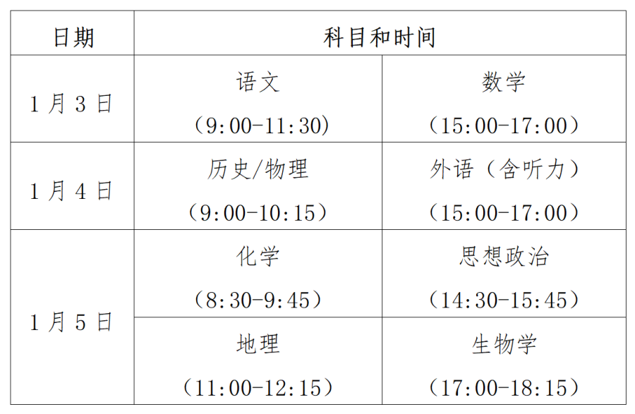 2025年高考综合改革适应性演练测试将于2025年1月3日—1月5日举行。本次适应性演练测试采用“3+1+2”模式。现就有关事项提醒如下: