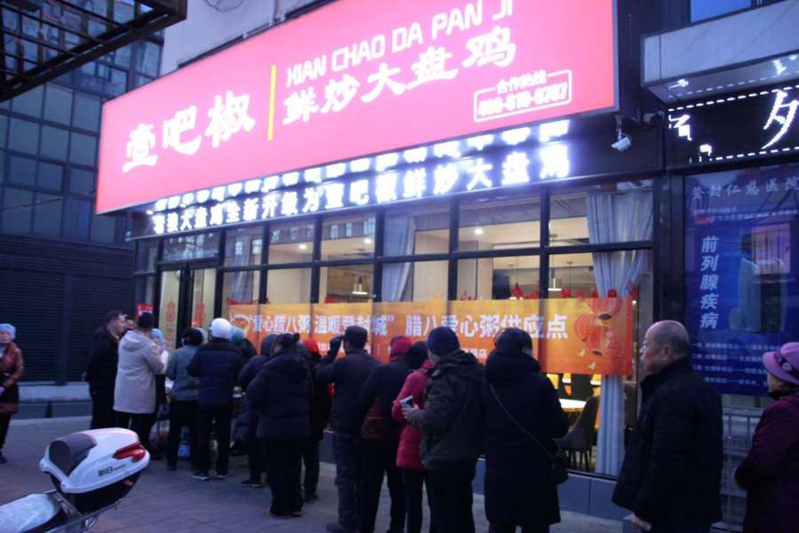“腊八节要喝腊八粥,走到楼下排队就能领到这么营养丰富的腊八粥喝,非常开心,非常温暖!”在壹吧椒大盘鸡爱心粥领取点的王大妈说。