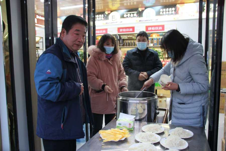 在韩风源店门口,市民正在排队依次领取八宝粥,该企业负责人表示:“腊八节是开年的第一个民俗节日,现在人们生活节奏比较快,工作都很忙,估计都没有时间去精心、耐心熬粥,今天也是工作日,淳味饺子为市民精心准备了八宝粥,淳味饺子连续多年做这件事,就是让更多人能在这一天喝上热粥,暖和又有营养。”