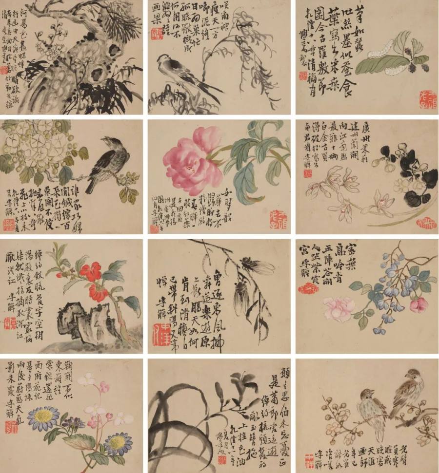李鱓《花鸟草虫诗画册》十二开 设色纸本-16×20cm×12