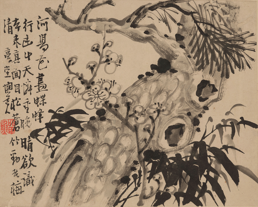 题识:河阳花尽蝶蜂行,幽草天怜重晚晴。欲识本来真面目,松苍竹劲老梅清。复堂懊道人。