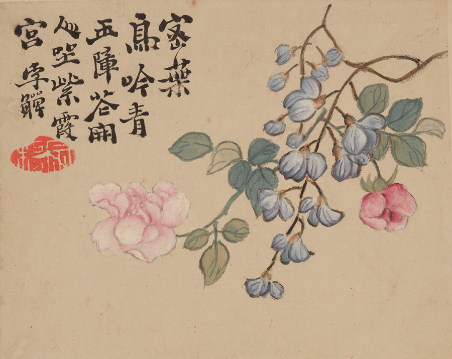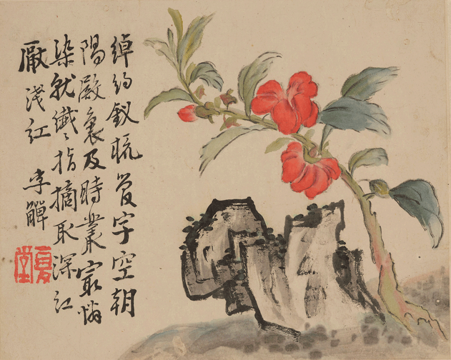 题识:绰约钗梳管字空,朝阳殿里及时丛。最怜染就纤纤指,摘取深红厌浅红。李鱓。
