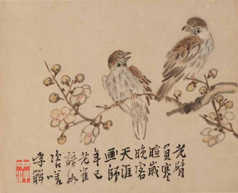 题识:老臂负寒喧,岁晚客天涯。画师年已老,雀语如咨嗟。