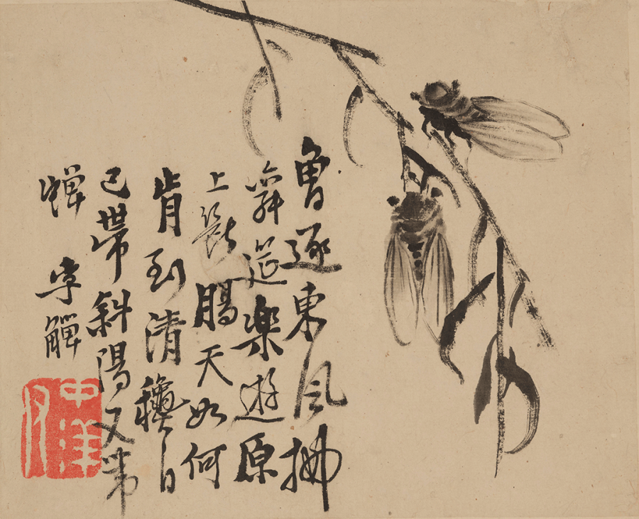 题识:曾逐东风拂舞筵,乐游原上断肠天。如何肯到清秋日,己带斜阳又带蝉。李鱓。