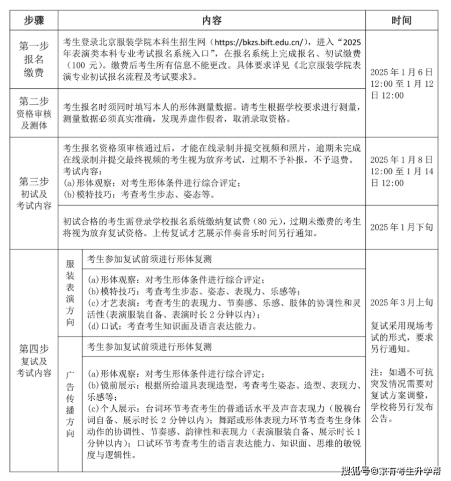 表演类校考的专业为表演(服装表演)、表演(广告传播),考生只能在以上专业方向中选择1个报考。2025年1月6日12:00至1月12日12:00,考生登录北京服装学院本科生招生网,进入“2025年表演类本科专业考试报名系统入口”报名。