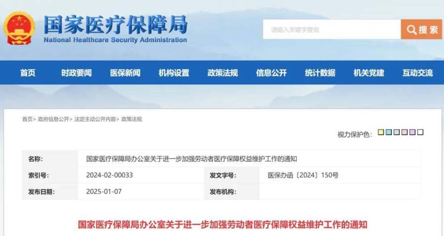 1月7日,国家医保局印发《关于进一步加强劳动者医疗保障权益维护工作的通知》。