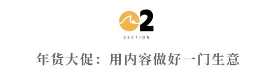 内容是激发用户需求的前置动作,所以策略上“短视频+直播”依旧是一组黄金搭档,比如通过短视频聚焦新年新气象,重视年货氛围打造,借自用、礼赠、超值囤货等生活场景激发用户需求。
