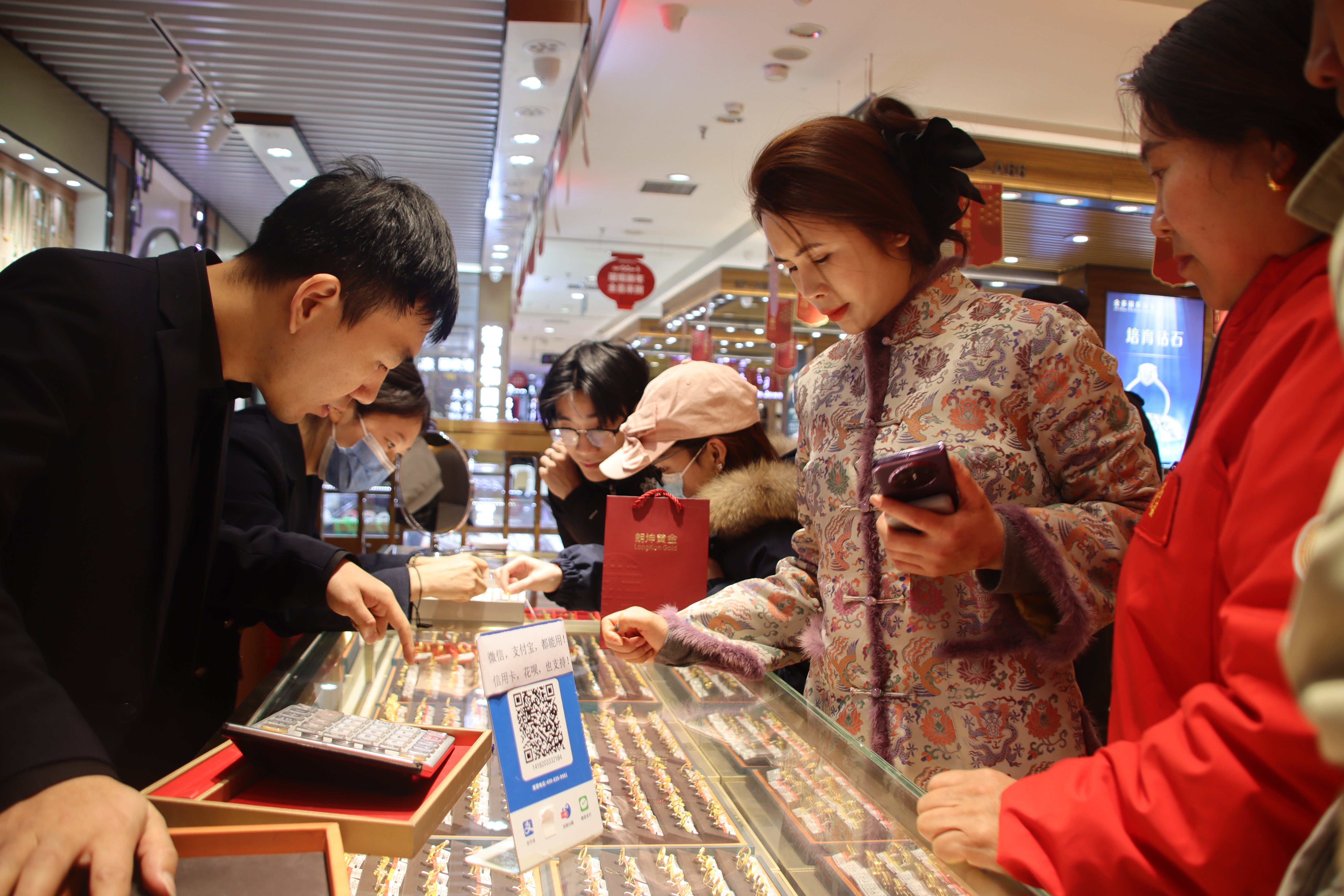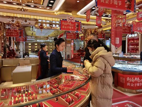 “整个商场有2万多平方米,入驻企业和品牌100多家,全国黄金珠宝10余家知名品牌的区域总部都设在这,并向周边省份批发配货。”金多银多珠宝广场副总经理樊佳梅翘盼新年临近,充满期许。